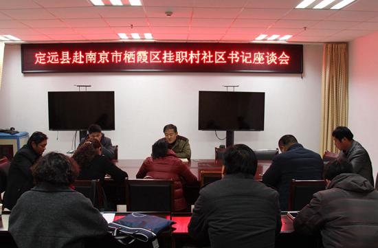 11月30日下午,定远县委组织部召开赴南京市栖霞区挂职村(社区)党组织书记座谈会。五名挂职村(社区)党组织书记和有关乡镇组织委员参加会议。县委组织部副部长张本林主持座谈会。