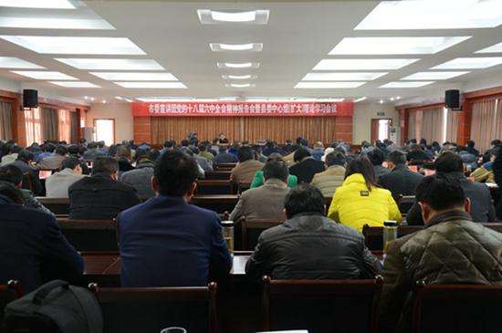 12月6日,我县召开市委宣讲团党的十八届六中全会精神报告会暨县委中心组(扩大)理论学习会议,邀请市委宣讲团成员、市委党校副校长姜小平到会作学习贯彻党的十八届六中全会精神报告宣讲。邹军、张洪、李世全、刘洪智、王红丽、阮兵、黄承卫等县委中心组成员到会聆听报告。