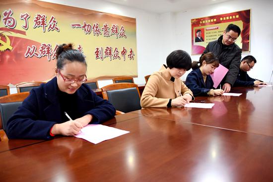图为我县组工干部在定城镇指导参与换届的工作人员签订换届承诺书