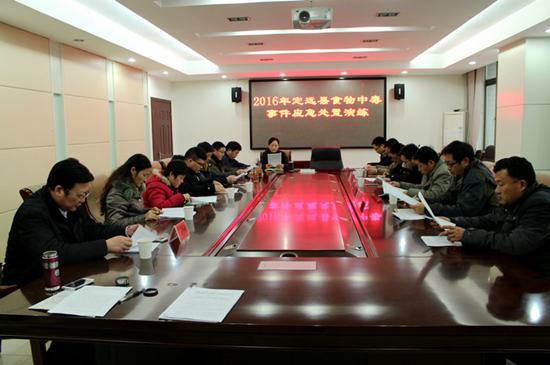 12月21日下午,由定远县卫生计生委和食品安全委员会办公室主办,定远县市场监督管理局、教育体育局、总医院、疾控中心、定远县阳光学校等单位参加的"2106年定远县食物中毒事件应急处置演练",在县卫生计生委会议室以桌面推演的方式举行。