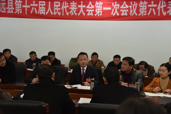 1月4日,县十六届人大一次会议开幕式后,各代表团在各自讨论点参加会议讨论。审议《政府工作报告》,审查计划、预算报告,讨论选举办法草案。会上,各代表团与会代表热情高涨、踊跃发言。
