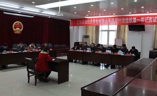 11月20日上午,定远县面向大学生村官公开选拔村党组织第一书记面试举行,来自本县的八名大学生村官参加面试。