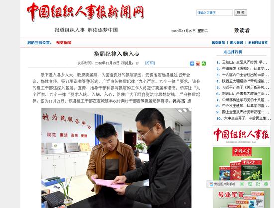 眼下进入县乡人大、政府换届期,为营造良好的换届氛围,安徽省定远县通过召开会议、媒体宣传、签订承诺书等种形式,广泛宣传换届纪律“九个严禁、九个一律”要求,该县的组工干部还深入基层,宣传、指导干部和参与换届的工作人员签订换届承诺书,切实让“九个严禁、九个一律”要求入眼、入脑、入心,促使广大干群自觉筑牢思想防线,严守换届纪律。图为11月21日,该县组工干部在定城镇丰收村向村干部宣传换届纪律要求。(冯再雷 摄)